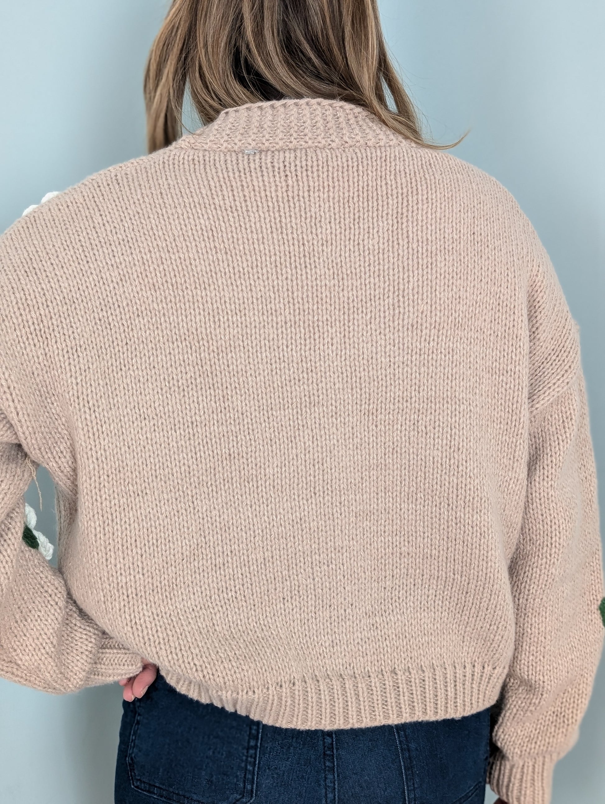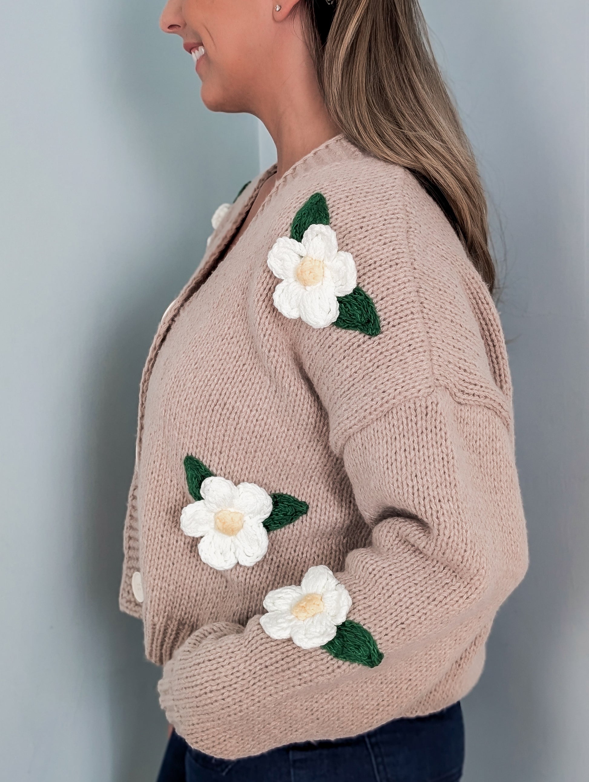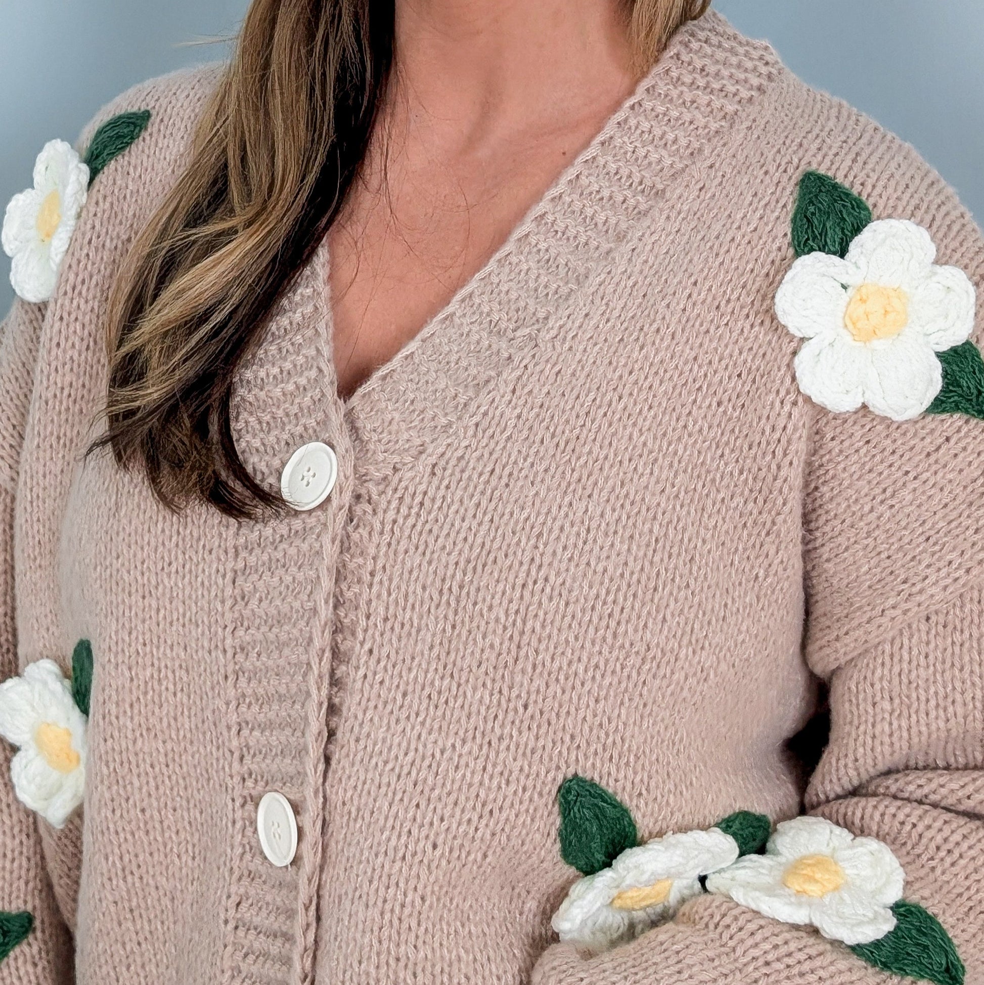 Soft flower cardigan, a perfect blend of comfort and charm. Crafted with soft and cozy fabric, this cardigan features a relaxed silhouette that drapes beautifully, making it an ideal layering piece for any outfit. The unique 3D flower detail at the front adds a playful spring touch, elevating the classic cardigan design to new heights of femininity. Whether you're dressing it up for a brunch date or layering it over your favorite loungewear, this versatile cardigan offers endless styling possibilities. Experience the cozy elegance of this essential wardrobe staple—your new go-to for effortless chic.