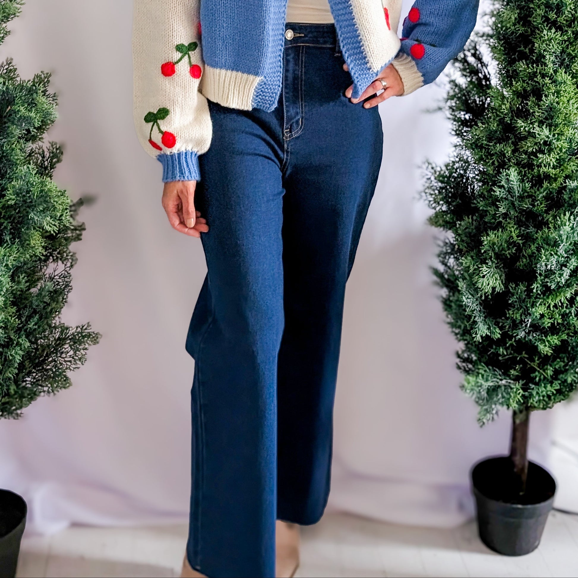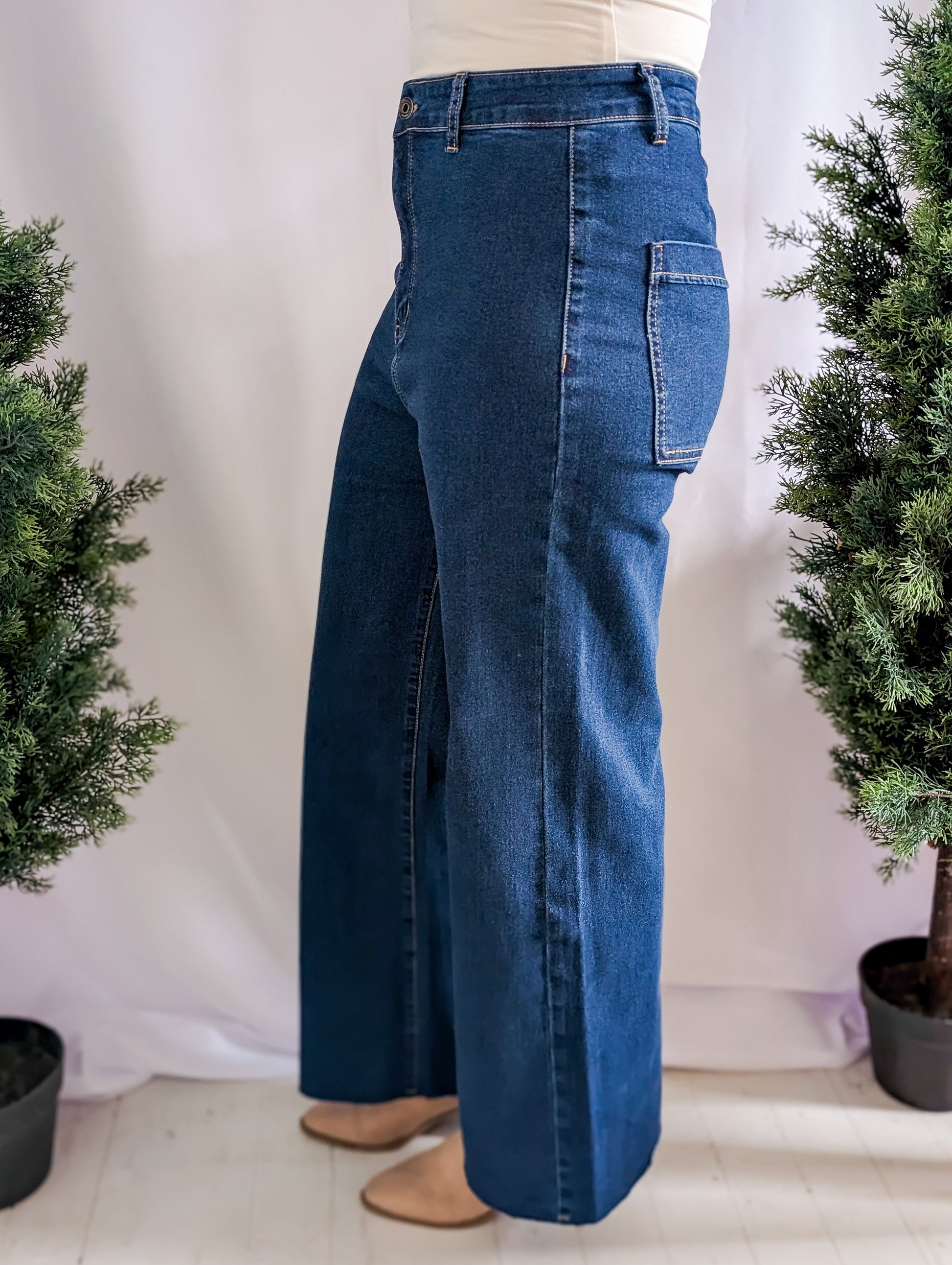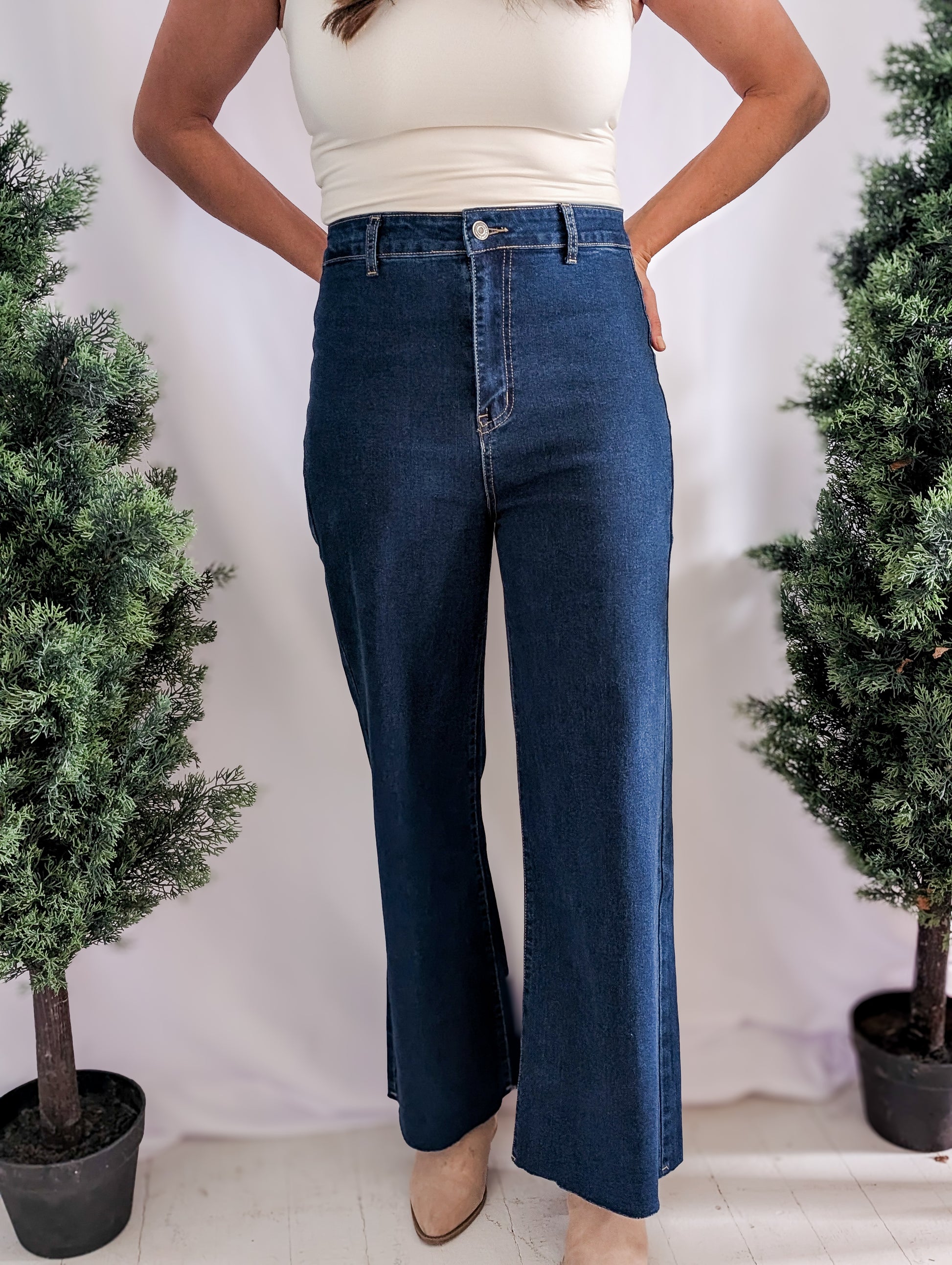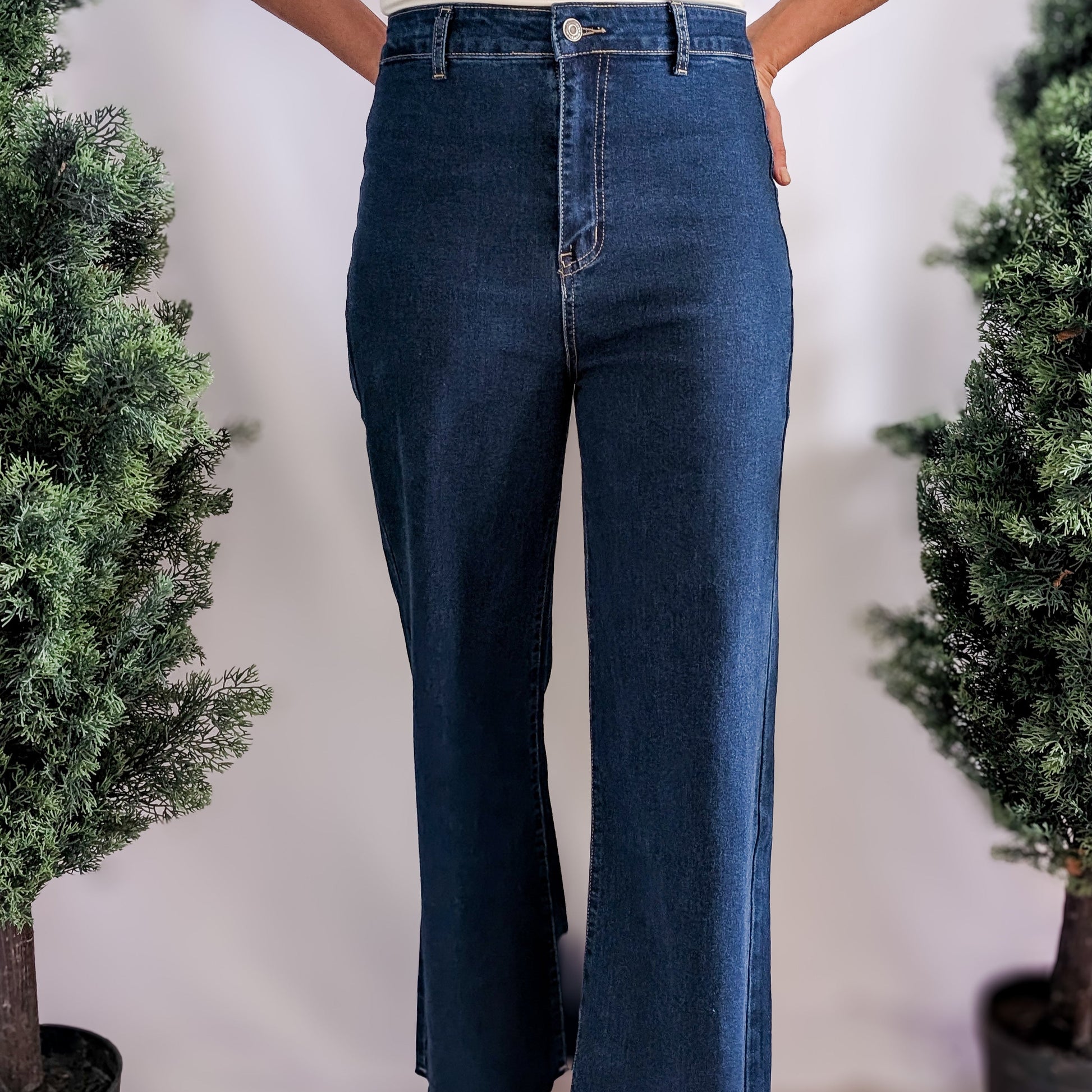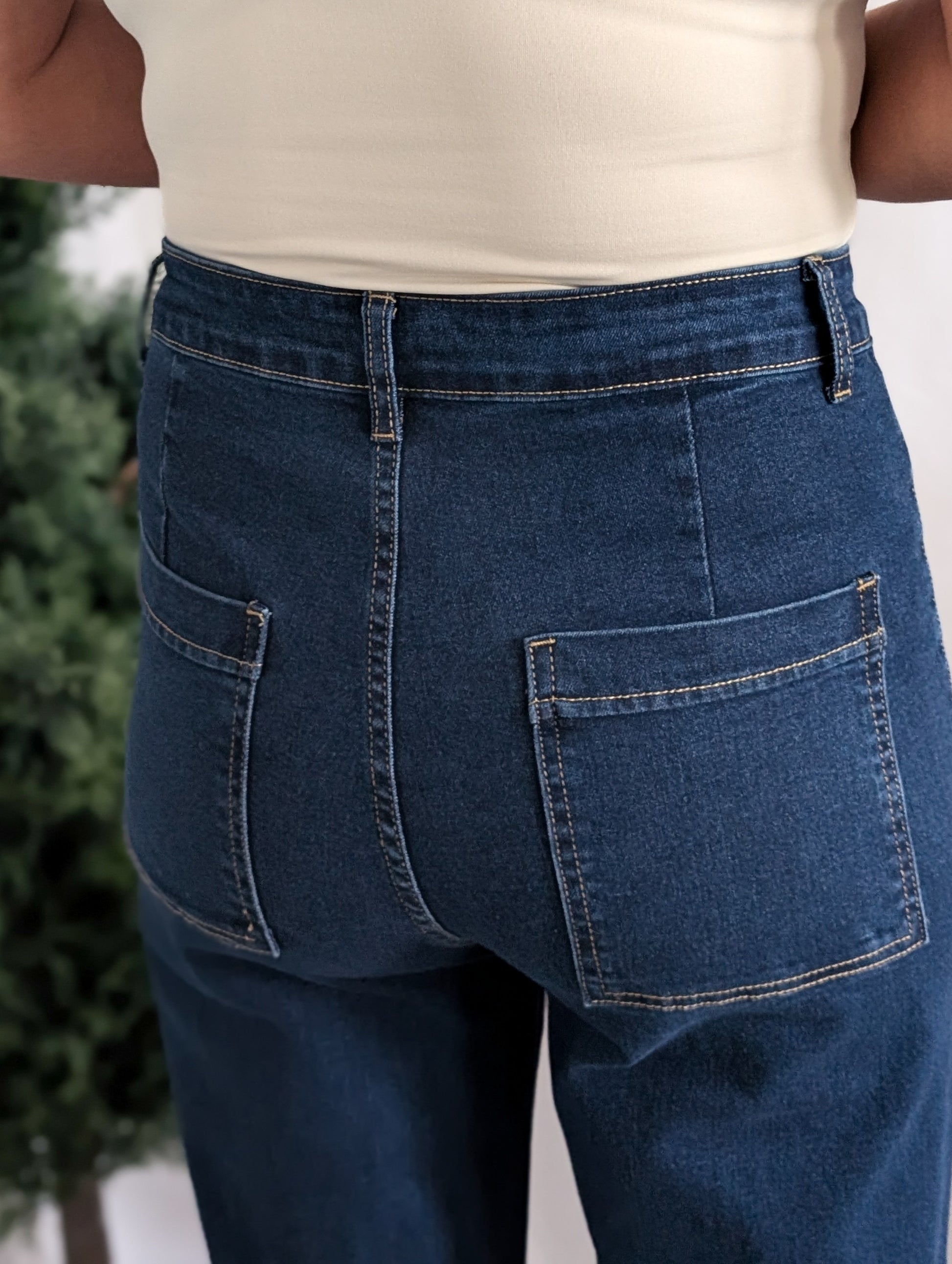 Effortlessly chic and incredibly comfortable, these dark denim wide-leg jeans are a wardrobe essential. Crafted from a soft, high-quality denim blend with a touch of stretch, they provide the perfect balance of structure and flexibility. The wide-leg silhouette offers a modern, flattering fit that moves with you, making them ideal for both casual outings and dressed-up occasions.