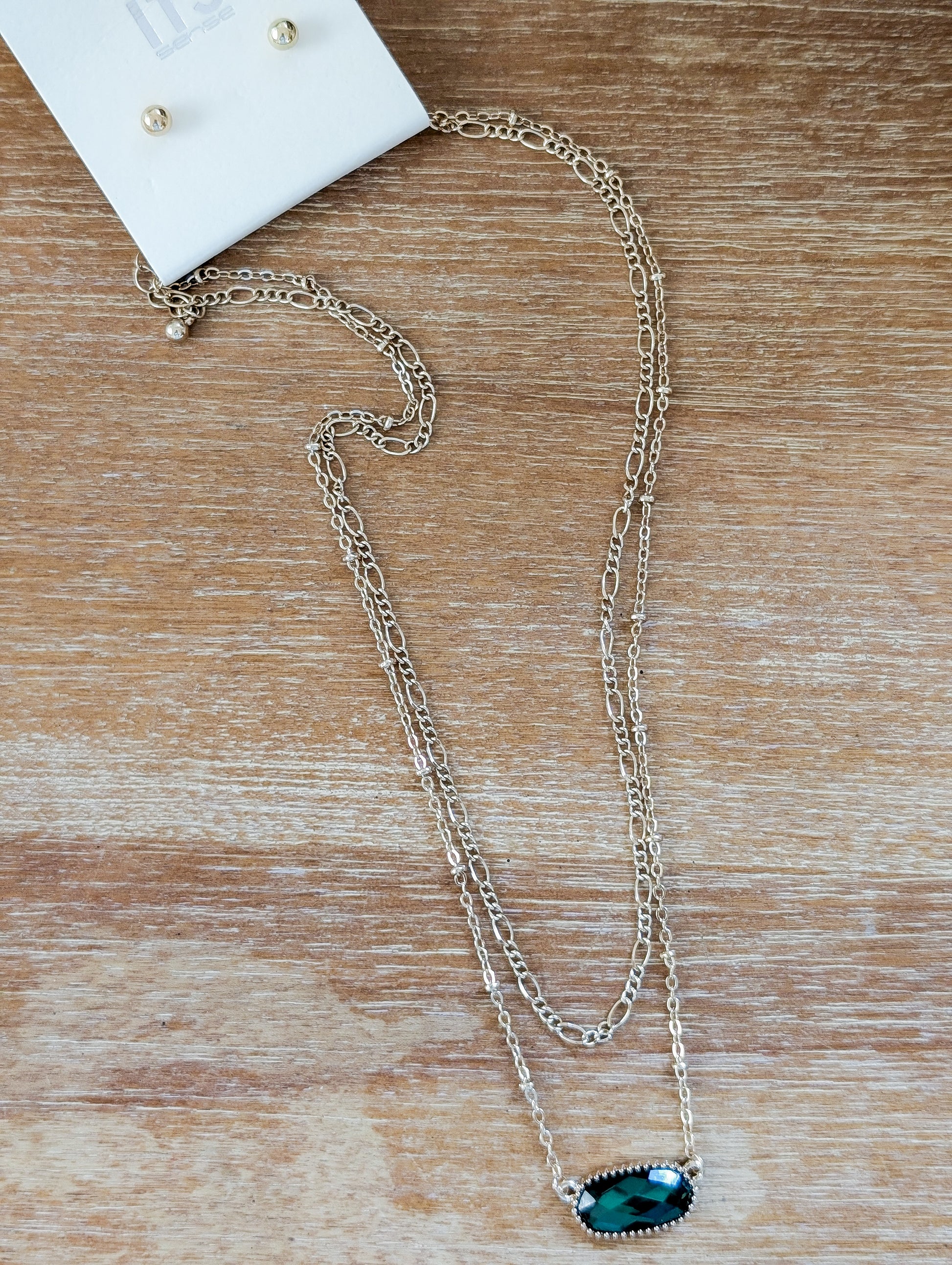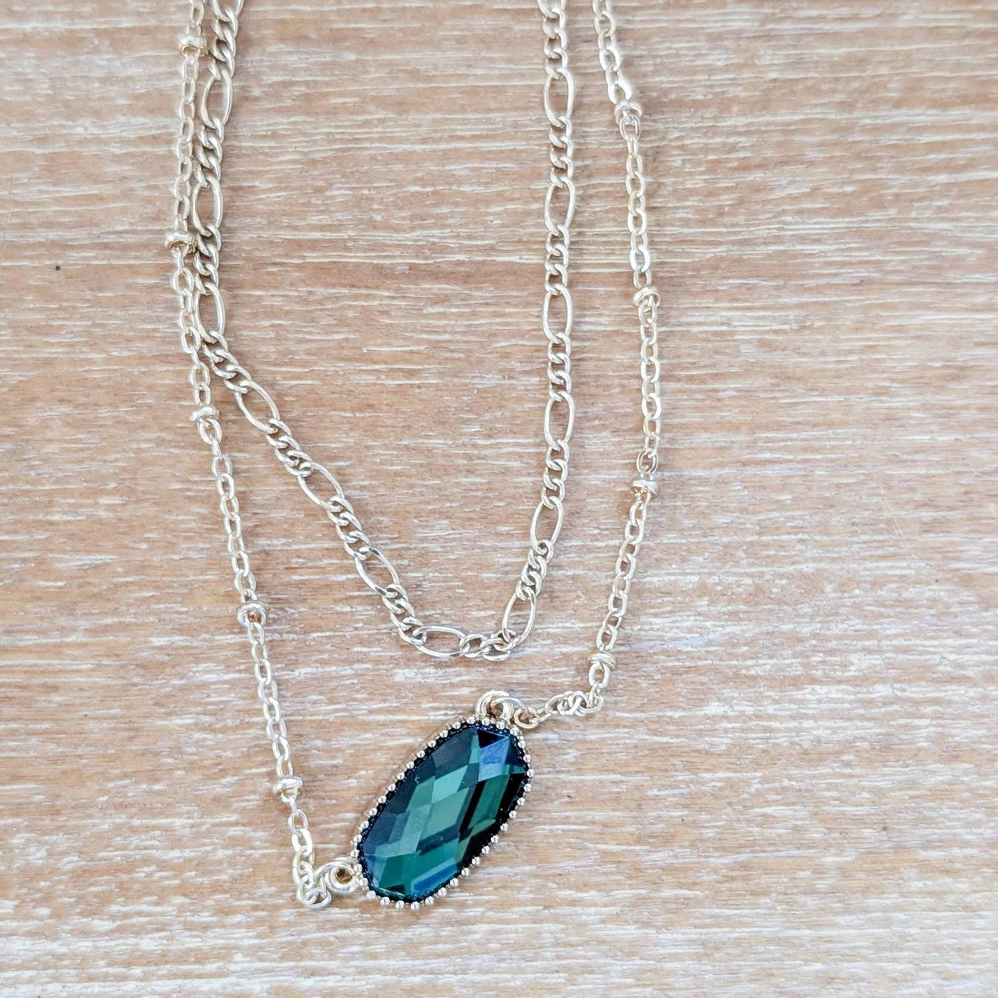 Add a touch of elegance to your jewelry collection with our stunning two-chain faux gold necklace featuring a vibrant green stone. This beautifully designed necklace showcases two delicate chains that layer perfectly for a trendy yet sophisticated look.
