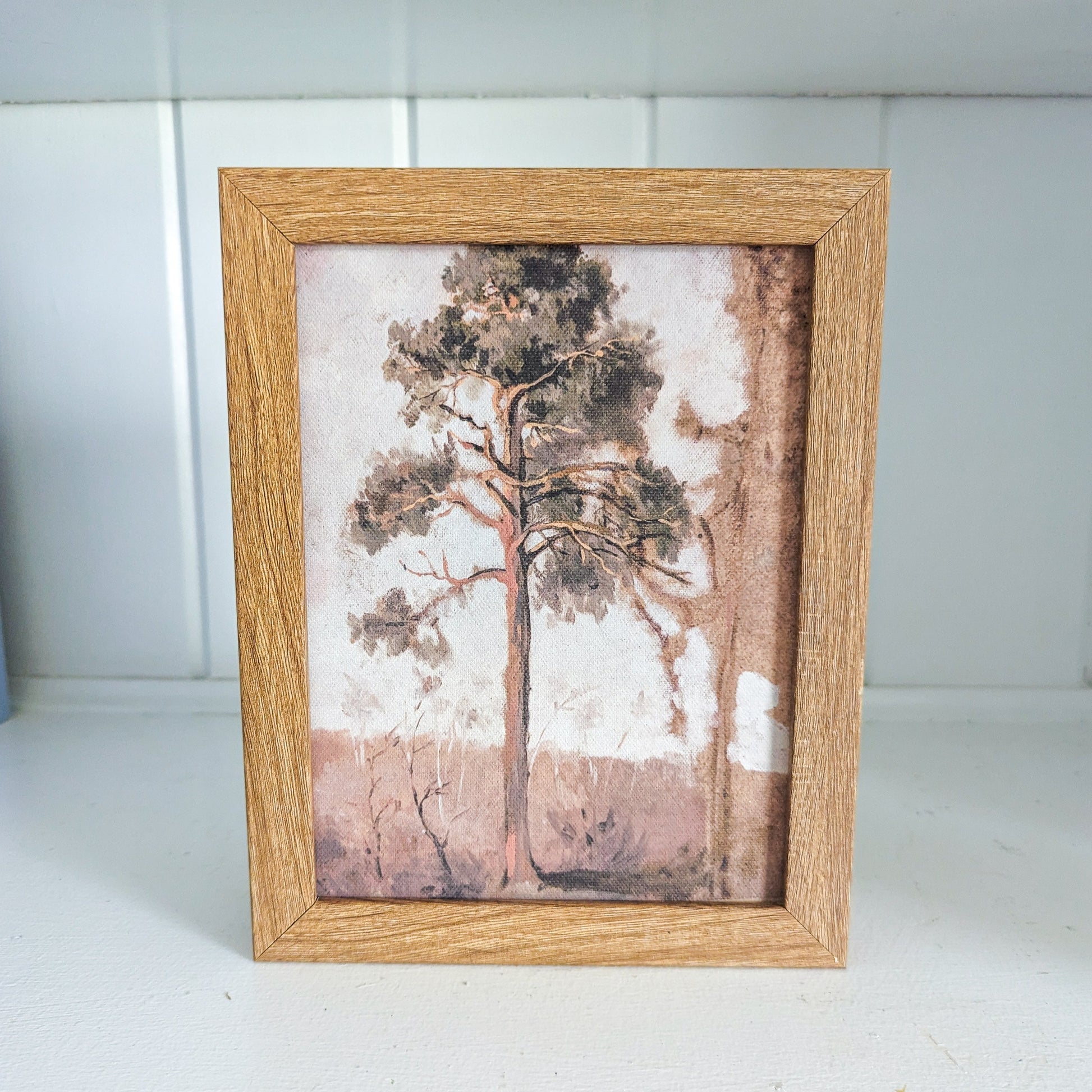 Wood frame canvas of a watercolor forest landscape. Accent for your gallery wall or shelf sitter.