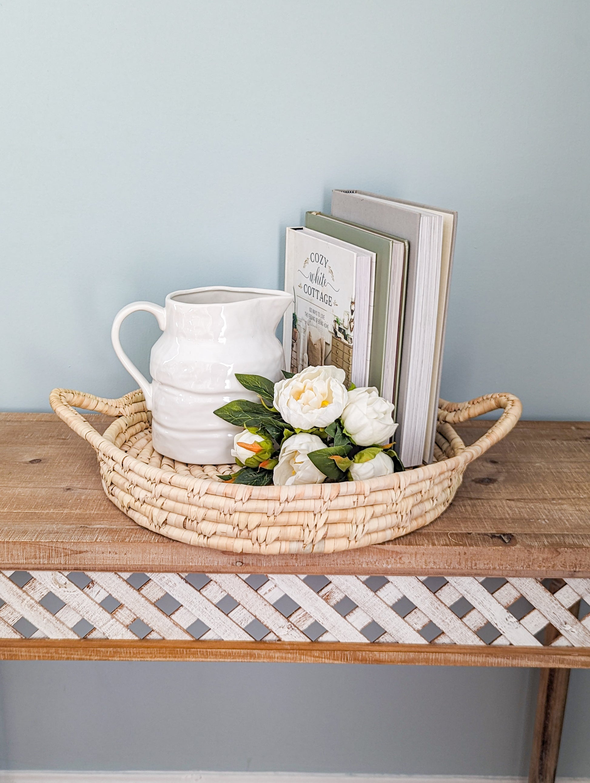 Decorative Hand-Woven Grass & Date Leaf Baskets w/ Handles, Natural