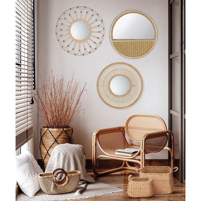 Material: Rattan, Mirror