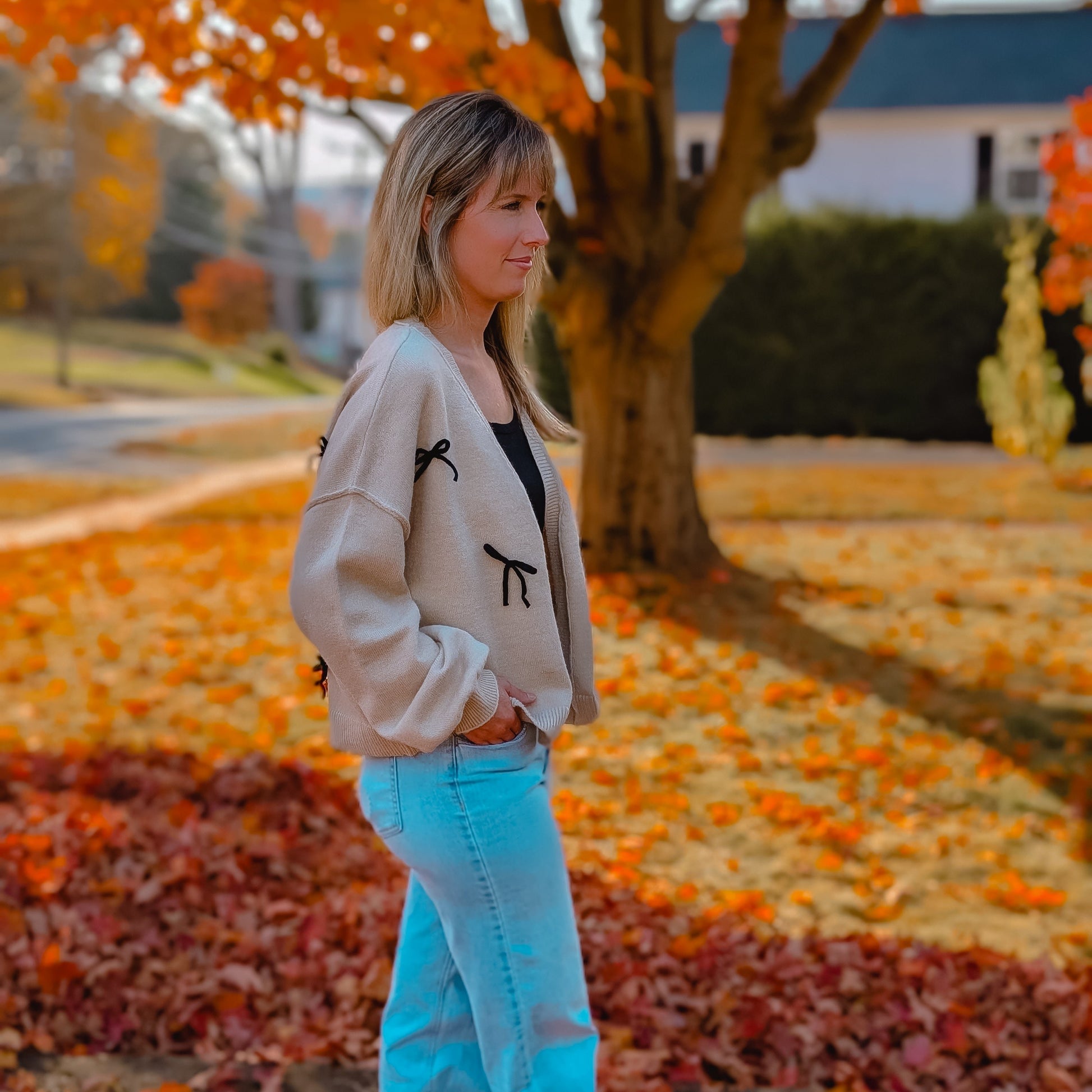 Introducing our soft open cardigan, a perfect blend of comfort and charm. Crafted with soft and cozy fabric, this cardigan features a relaxed silhouette that drapes beautifully, making it an ideal layering piece for any outfit. The unique bow detail at the front and back adds a playful touch, elevating the classic cardigan design to new heights of femininity. Whether you're dressing it up for a brunch date or layering it over your favorite loungewear, this versatile cardigan offers endless styling possibilities. Experience the cozy elegance of this essential wardrobe staple—your new go-to for effortless chic.