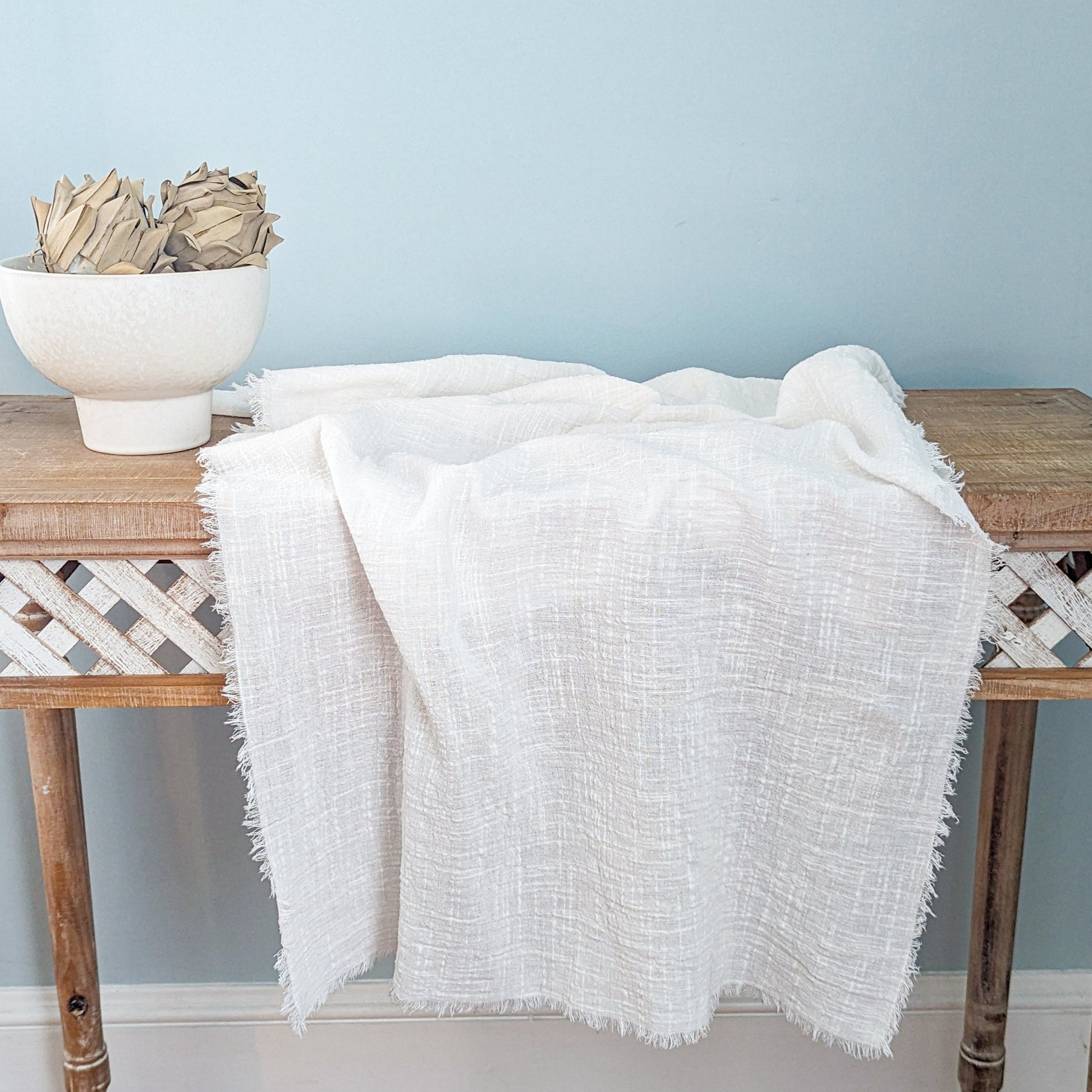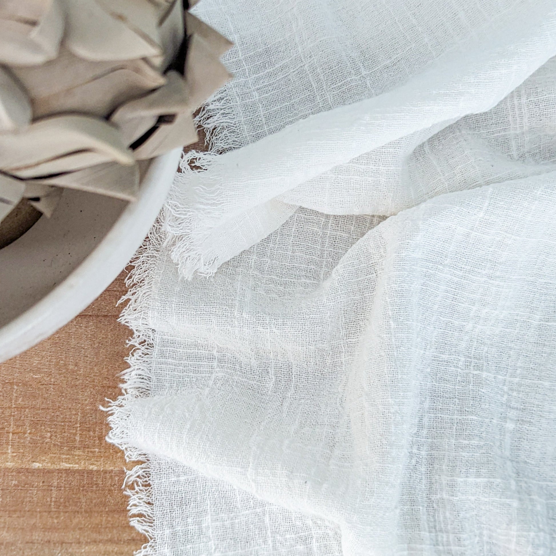 Elevate your tablespace with this gauze cotton cloth table runners. Made from a thick, quality fabric, these runners add a touch of organic style to any setting. The frayed edges give them a casual and rustic feel, perfect for any event or celebration. Spice up your home décor with these beautiful runners.